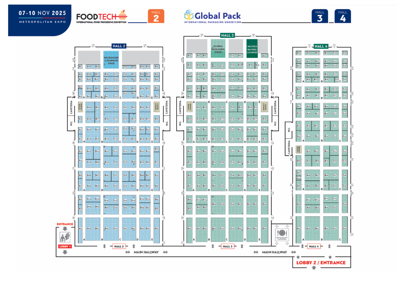FOODTECH 2025 will take place at the Metropolitan Exhibition Center from November 7 to 10. At the same time, Global Pack, the trade show for the packaging industry, will also take place, with its exhibitors located in Halls 3 and 4.