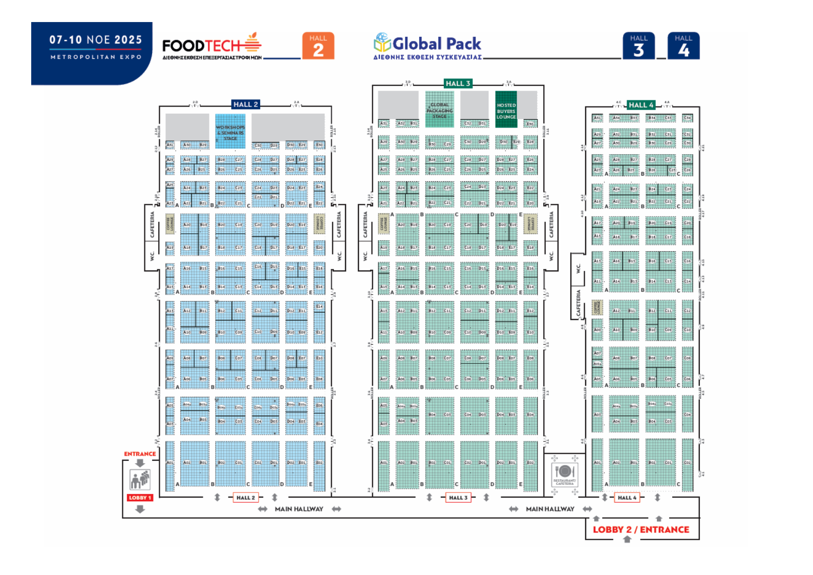 Η FOODTECH 2025 θα πραγματοποιηθεί στο εκθεσιακό κέντρο Metropolitan από τις 7 έως τις 10 Νοεμβρίου. Παράλληλα, θα λάβει χώρα και η έκθεση για τη συσκευασία, Global Pack, με τους εκθέτες της να αναπτύσσονται στα Halls 3 και 4.